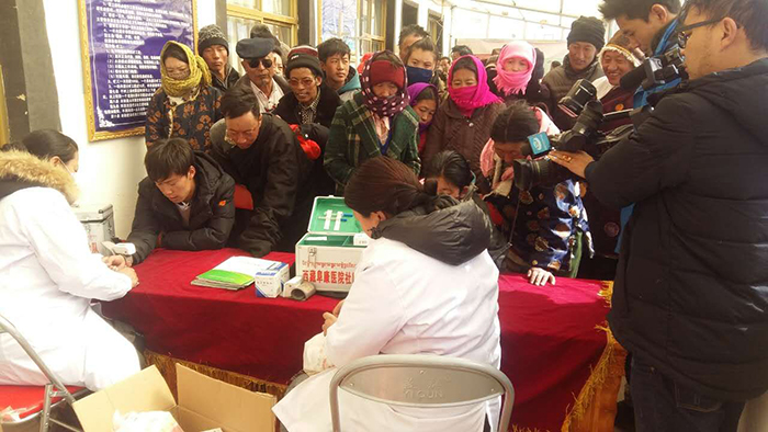 2月19日,在藏歷新年即將來臨之際,為進一步宣傳黨的十八屆六中全會和自治區(qū)第九次黨代會精神,自治區(qū)政協(xié)辦公廳駐那曲縣羅瑪鎮(zhèn)工作隊聯(lián)合西藏阜康醫(yī)院、拉薩康桑工貿(mào)有限公司,分別在那曲地區(qū)文化局、羅瑪鎮(zhèn)委、政府三個駐村點開展醫(yī)療、文化、科技三服務(wù)活動。