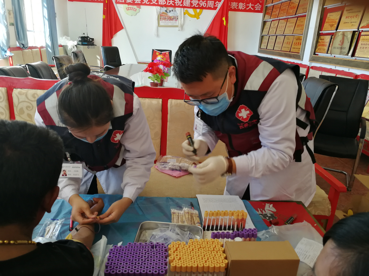 9月17日一大早,次巴珠局長開車接我們?nèi)スぷ鼽c,由于是早上,局長害怕驚擾我們,他一直在門外等候,等我們走出門才發(fā)現(xiàn)他已經(jīng)立在門口許久,這也讓我們深深感動。我們篩查的第一個區(qū)域是革吉縣革吉鎮(zhèn)的那普居委會農(nóng)牧民,工作地點設(shè)在那普居委會。