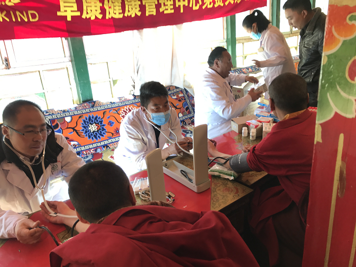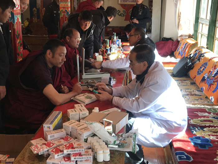 【概要:12月10日上午,在西藏阜康醫(yī)院名譽(yù)院長(zhǎng)、慢病管理中心主任張德才的帶領(lǐng)下,阜康義診分隊(duì)一行6人來到楚布寺,為附近的僧侶和群眾免費(fèi)測(cè)血壓、測(cè)血糖、并發(fā)放常見疾病的藥物?!?/span>