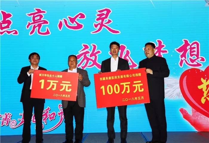 王斌同志代表西藏阜康醫(yī)藥發(fā)展有限公司捐款100萬元