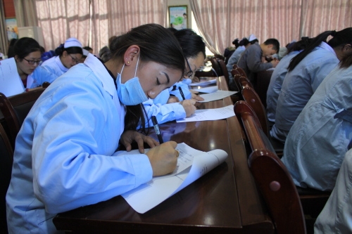考場紀(jì)律異常嚴(yán)格,筆者也在阜康醫(yī)院婦產(chǎn)兒童分院參加了考試,員工分別以每行醫(yī)療、醫(yī)技、護(hù)理、行政交叉座次,醫(yī)療、醫(yī)技、護(hù)理、行政的考卷也各不相同。現(xiàn)場由敖德秀副院長、李君副院長、劉連福副院長監(jiān)考??荚囶}目并不難,只要認(rèn)真背誦應(yīng)知應(yīng)會手冊都是能夠輕松應(yīng)答的。但是,好多同事并沒有認(rèn)真學(xué)習(xí)應(yīng)知應(yīng)會手冊,考試現(xiàn)場抓頭發(fā)的抓頭發(fā),咬筆桿的咬筆桿,各個(gè)凝神屏息經(jīng)蹙眉頭,現(xiàn)場氣氛很是緊張。