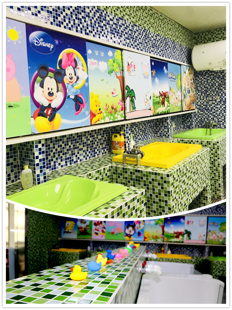 新生兒和4個月前的小嬰兒視錐細胞不發(fā)達,西藏阜康醫(yī)院婦產(chǎn)兒童分院嬰兒游泳中心裝修升級后,以馬賽克墻面為主,配以生動且鮮艷兒童畫,形成同步視覺刺激的氛圍,來促進新生兒的視覺發(fā)育。