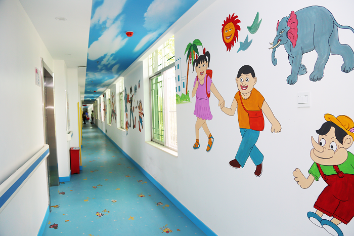 近日,隨著醫(yī)院的改造升級(jí),兒科病房一改往日單調(diào)刻板的面貌,變身童趣十足的游樂園。整個(gè)科室以兒童喜愛的鮮亮色彩作為主色調(diào),并增添了許多人性化設(shè)計(jì),將原來白色墻面豐富為彩色亮麗、充滿童趣的墻體,走廊處畫上了各類卡通圖案,營造了溫馨可愛的氛圍,小朋友們就診時(shí)如同置身于卡通樂園,充分體現(xiàn)了現(xiàn)代化??漆t(yī)院室內(nèi)設(shè)計(jì)的人文理念。