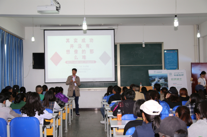 王斌以“其實成功并沒有想象的那么難”為主題,和藏大醫(yī)學(xué)院應(yīng)屆畢業(yè)生共同探討了如何工作與自主創(chuàng)業(yè),闡述了自己在拉薩21年來的創(chuàng)業(yè)經(jīng)歷,為在座大學(xué)生分享了“用別人的平臺入世、找到志同道合的合伙人、選準行業(yè)項目堅持到底”的創(chuàng)業(yè)思想,提出了“單位上班也可以成就自己”的理念,并對“如何度過美好的一生”作出了詮釋。之后,王斌對在座的應(yīng)屆大學(xué)生說道:“不管世界如何變化,一定要相信這個世界上還存在真善美!”