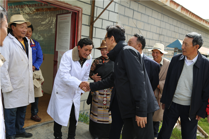 阿沛·晉源主席和施工人員一一握手慰問,囑咐他們在施工過程中一定注意安全!要把衛(wèi)生院建成標桿衛(wèi)生院,造福夏瑪鄉(xiāng)農(nóng)牧民群眾!看完即將竣工的衛(wèi)生院他又來到老舊的衛(wèi)生院看望正在工作的醫(yī)護人員,與醫(yī)護人員和患者親切握手交談,囑咐他們一定多加學(xué)習(xí)和培訓(xùn),用心工作,搬到新的衛(wèi)生院后一定不要辜負阜康全體員工的期望!接著晉源主席也指示阜康要繼續(xù)幫助衛(wèi)生院,切實提高衛(wèi)生院工作人員醫(yī)療水平,將夏瑪鄉(xiāng)衛(wèi)生院打造成全縣乃至全區(qū)的標桿衛(wèi)生院!