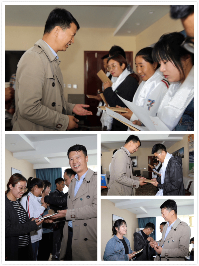 隨后,王斌董事長(zhǎng)向7名規(guī)培生門頒發(fā)了《阜康員工守則》,并敬獻(xiàn)了潔白的哈達(dá),佩戴了阜康院徽,他臨別叮囑:“謹(jǐn)記阜康囑托,謹(jǐn)守阜康準(zhǔn)則,不辱阜康之名,為阜康爭(zhēng)榮!希望你們能夠腳踏實(shí)地在華西醫(yī)院和成都市第三人民醫(yī)院帶教老師的指導(dǎo)下完成規(guī)培計(jì)劃,并在三年內(nèi)考過(guò)執(zhí)業(yè)醫(yī)師資格證和規(guī)范化培訓(xùn)資格證,按時(shí)歸來(lái)服務(wù)阜康、報(bào)效西藏!”
