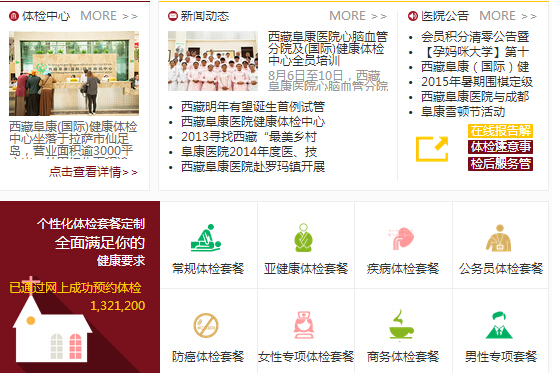 患者可以通過(guò)西藏阜康(國(guó)際)健康體檢中心網(wǎng)站,在線留言、在線即時(shí)通訊和集團(tuán)進(jìn)行互動(dòng)溝通。還可通過(guò)網(wǎng)站選擇體檢套餐、 預(yù)約醫(yī)院體檢、獲取體檢報(bào)告果等便利。