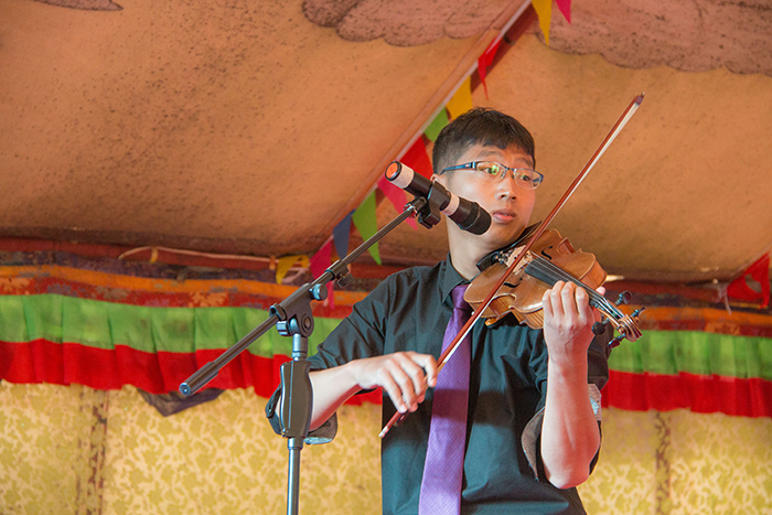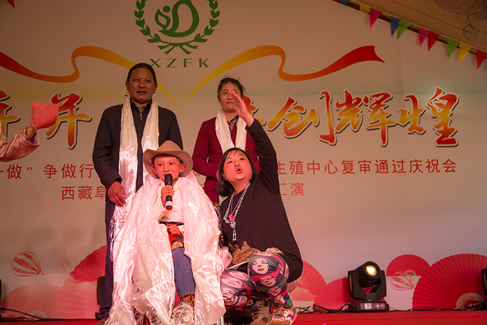 看藏裝典雅,賞舞姿婀娜。在三位主持人熱情洋溢的主持下,一曲優(yōu)雅典美的藏舞《芒康弦子》正式拉開了本次林卡文藝匯演的帷幕,也再度點燃了大家的林卡情懷!隨后,由醫(yī)院各科室員工帶來的諸如藏語歌曲演唱、小提琴演奏、架子鼓演奏、吉他演奏、古箏演奏、軍禮表演、現(xiàn)代舞蹈、獨舞、歌唱、小品、相聲、T臺秀、大合唱等一系列精彩紛呈的節(jié)目應接不暇地呈現(xiàn)在大家眼前,讓現(xiàn)場觀眾為之歡呼雀躍,好不開懷。同時,在本次的林卡文藝匯演中,還有一個十分特殊的節(jié)目——一個名為塔巴次仁的藏族小男孩及其家屬為我們?nèi)w阜康工作人員寫來一封感謝信,并在林卡演出現(xiàn)場為大家演唱了一首《感恩的心》。