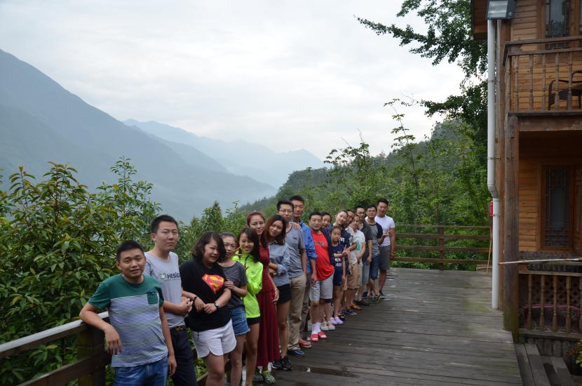 2016年8月25日,在精心的策劃準(zhǔn)備后,全體員工向距離成都70多公里的都江堰市虹口鄉(xiāng)出發(fā),錯(cuò)開出行高峰期,很快就到達(dá)了都江堰市區(qū),再經(jīng)過近10余公里的綿延的盤山路,車隊(duì)首先到達(dá)虹口區(qū)山頂(虹口區(qū)是著名的原生態(tài)保護(hù)區(qū)),雖然已是沉陽,但一陣陣清新的空氣仍伴隨習(xí)習(xí)微風(fēng)撫面而來,久違了美麗的群山,大家在山頭稍作停息,眺望云霧環(huán)繞的眾山,心曠神怡,不斷的拍照留念,捕捉這心動(dòng)的一刻。