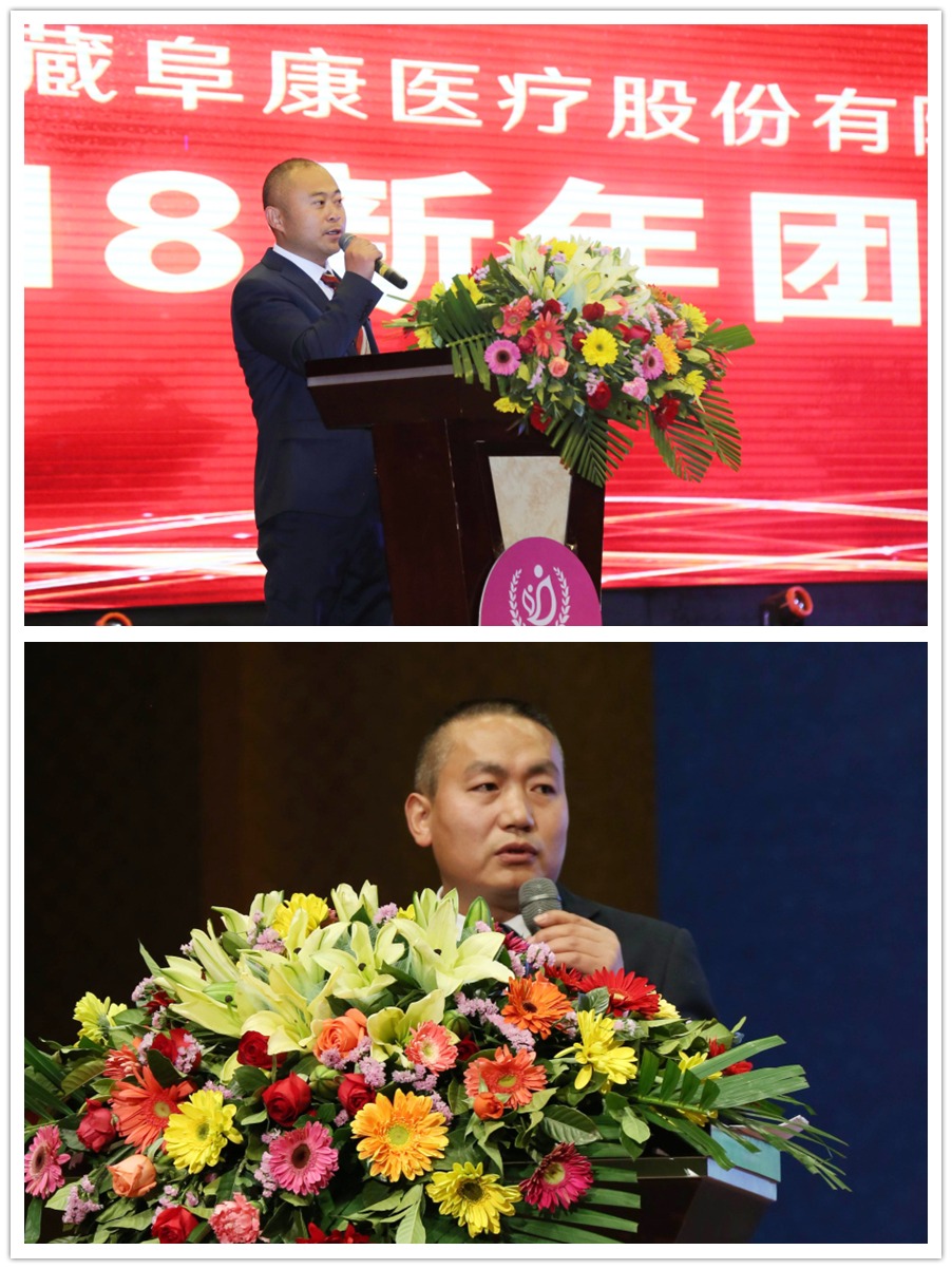 隨后,董事長(zhǎng)王斌走上講臺(tái)飽含激情地說“我之存在,因?yàn)橛心?rdquo;,并向所有來賓鞠躬致謝。董事長(zhǎng)王斌講述了阜康發(fā)展史、阜康人的奮斗史,從2005年的47名員工到現(xiàn)在的1024名員工,并再次感謝一路伴隨阜康成長(zhǎng)的所有人,還指出2018年是阜康發(fā)展史上很關(guān)鍵的一年,要早計(jì)劃、早安排、早部署,要以十九大精神為指導(dǎo),堅(jiān)持科學(xué)發(fā)展觀,早日把阜康建設(shè)成為現(xiàn)代化醫(yī)院。