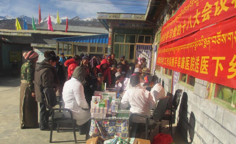 2012年12月5日,上午10點,拉薩的太陽高高地懸掛在天空,溫暖、舒適,我們四人在我院醫(yī)生王峰的帶領(lǐng)下,開著越野顛簸在高原崎嶇的路上。此行,帶著我們阜康人的溫暖、帶著我們的專業(yè)技術(shù)、帶著我們阜康醫(yī)院一萬多元的藥品,去山南洛扎縣木村,為當?shù)氐睦习傩账歪t(yī)送藥。