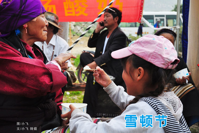 雪頓節(jié),是西藏最隆重的節(jié)日,千千萬萬的佛教徒從全世界涌向拉薩,以最虔誠的心、一步個(gè)頂禮膜拜,朝拜至高無上的佛祖。佛教信徒們到山上去修行,修行完畢時(shí)家里的親人帶著酸奶到山上去迎接他們,在回家的路上人們吃酸奶、跳舞、唱歌。