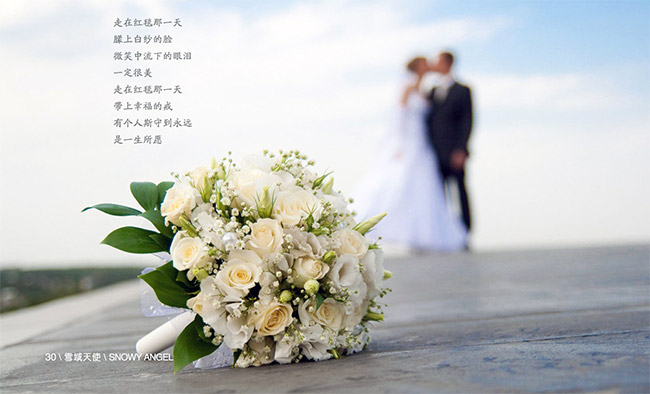 婚禮當(dāng)天,陰沉了許久的家鄉(xiāng),突然艷陽(yáng)高照,母親說(shuō):“女兒要岀嫁了,這是老天爺給的驚喜。”女眷們陪著我在房間里裝扮,老人們則不停地為我們說(shuō)著祝福的話。正午時(shí)分,裝扮姣好的我和老公在父母的陪同下出現(xiàn)在親友面前,一片掌聲為我們晌起。司儀帶著父母、公公婆婆、我和老公為到場(chǎng)親友敬酒,高喊著:“這是屈家的二女兒,今天就要出嫁了,旁邊這位是就是二女婿,請(qǐng)親友鄉(xiāng)鄰們?yōu)樗麄冏鱾€(gè)見(jiàn)證,為他們祝福,祝他們百年好合,早生貴子。”掌聲再次響起,此時(shí)我的心情真不知如何形容,眼前的父母撫育我長(zhǎng)大,眼前的親友見(jiàn)證我成長(zhǎng),今天的我翻開(kāi)人生新的篇章,此時(shí)百感交集,千言萬(wàn)語(yǔ)匯成一行淚。