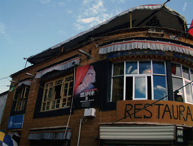 在拉薩工作快5年,第一次去了瑪吉阿米,這是一個(gè)愛情傳說醞釀岀來的藏餐廳。為了倉央嘉措與瑪吉阿米的邂逅傳說,為了感悟詩人“在那東山頂上,升起皎潔月亮,瑪吉阿米的面容,漸漸浮現(xiàn)心上”那句情詩,為了尋覓瑪吉阿米的足跡,我順著八廓街繞到了東南角,一座橙黃色三層藏式小樓映入眼簾。