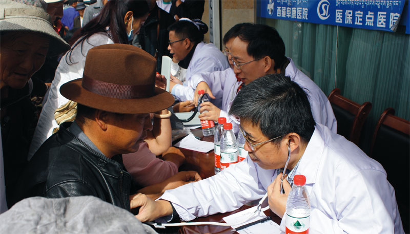 因?yàn)檎Z(yǔ)言問(wèn)題,阜康醫(yī)院的醫(yī)護(hù)人員主動(dòng)承擔(dān)起“導(dǎo)醫(yī)”的工作,認(rèn)真聽(tīng)取并翻譯專家和患者的每一句話。本次義診活動(dòng)進(jìn)行到下午6時(shí)許,8位專家為近200位居民提出保養(yǎng)身體的意見(jiàn)和建議。市民扎西在參加過(guò)義診后說(shuō):“我平時(shí)總有頭疼病,今天專家診斷過(guò)后,告訴我以后要少喝酒,注意作息,就能好。謝謝專家們頂著大太陽(yáng)為我們看病。”