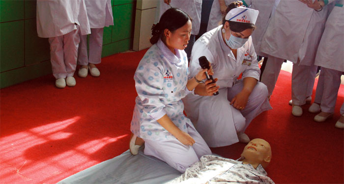 為了進(jìn)一步規(guī)范我院職工心肺復(fù)蘇技能操作,同時通過模擬院內(nèi)突發(fā)急救事件,強化流程培訓(xùn),提高全院人員的急救意識,達(dá)到全員熟練掌握的目的, 2015年6月26日下午,我院組織舉辦心肺復(fù)蘇培訓(xùn)班。全院60多名護(hù)理人員參加了培訓(xùn)。急診科護(hù)士黃燕妮向參加培訓(xùn)的護(hù)理人員詳細(xì)講解了心肺復(fù)蘇緊急救護(hù)的基本原則、方法與步驟,通過現(xiàn)場模擬演練,讓參訓(xùn)人員對心肺復(fù)蘇的全過程有了更加深刻的理解。