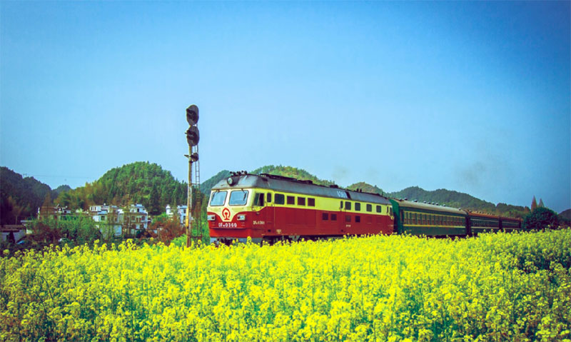 有一次,我記得咱丫頭回來以后笑得就跟吃了蜂蜜似的,跟我們說道鐵路兩邊的油菜花開得可好啦,一只只小蜜蜂嗡嗡嗡地飛過啦,還有什么三株兩株雪白的梨花樹引來不少蝴蝶翩翩起舞啦……還說什么鐵道兩邊的野草也開了花,旁邊有一只蝸牛媽媽帶著孩子正路過一灘小水洼……