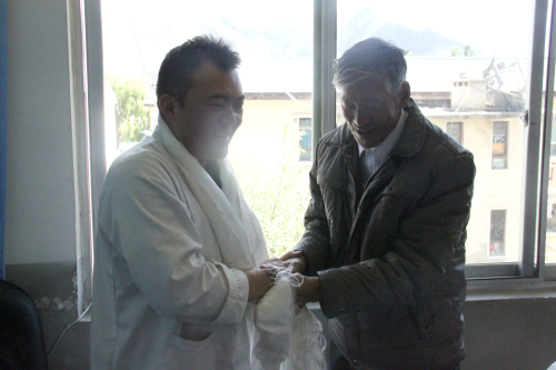 西藏阜康醫(yī)院外一科于2015年5月23日收治一名阿里措勤縣曲樂鄉(xiāng)尼雄2村病人,病人姓名:撥阿地,住院號F0006460,診斷:右脛腓骨開放性粉碎性骨折并大面積皮膚壞死,共做4次手術(shù),因病人家庭經(jīng)濟困難,無法承擔全部醫(yī)療費,目前病人已臨床治愈,可以出院,共住院63天,總費用:71300.18元,交押金29200元,欠費42100.18元,5月份曾向王斌董事長匯報過上術(shù)情況后,王總指示:先治病,所欠部分的費用由雪域天使基金會補充。