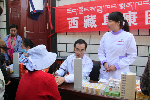 根據(jù)自治區(qū)工商聯(lián)《關(guān)于深化區(qū)直機(jī)關(guān)在職黨員到社區(qū)服務(wù)群眾活動(dòng)》的統(tǒng)一安排:阜康醫(yī)藥有限公司四個(gè)黨支部,在張德才總院長的帶領(lǐng)下,一行8人在2015年8月8日上午到拉薩市城關(guān)區(qū)嘎瑪貢桑社區(qū)進(jìn)行義診活動(dòng),帶著1.5萬余元藥品和便攜式B超,心電圖等。在半天時(shí)間內(nèi)貢義診380余人,為社區(qū)群眾進(jìn)行了測量血壓、發(fā)放藥品、健康咨詢等,受到了社區(qū)群眾的熱烈歡迎。期間正在慰問群眾的自治區(qū)政協(xié)副主席阿沛晉源,和區(qū)統(tǒng)戰(zhàn)部副部長、區(qū)工商聯(lián)黨組副書記李瑞富等領(lǐng)導(dǎo)的高度評價(jià)。