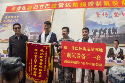 2016年5月11日上午,王斌董事長(zhǎng)在捐贈(zèng)儀式上講到:“阜康醫(yī)院自建院以來(lái),始終秉承‘用我們的知識(shí)和良知為人類健康服務(wù)’的辦院宗旨,堅(jiān)持發(fā)展不忘百姓、不忘社會(huì)。這次我們向甘巴拉雷達(dá)站的子弟兵們捐贈(zèng)這套制氧設(shè)備,希望能夠?yàn)榇蠹覄?chuàng)造更好的工作、生活環(huán)境,希望能為駐守祖國(guó)邊疆的子弟兵們貢獻(xiàn)一份力量,在此,我謹(jǐn)代表阜康集團(tuán)全體員工向駐守在甘巴拉雷達(dá)站的人民解放軍全體指戰(zhàn)員表示最真摯的敬意。”