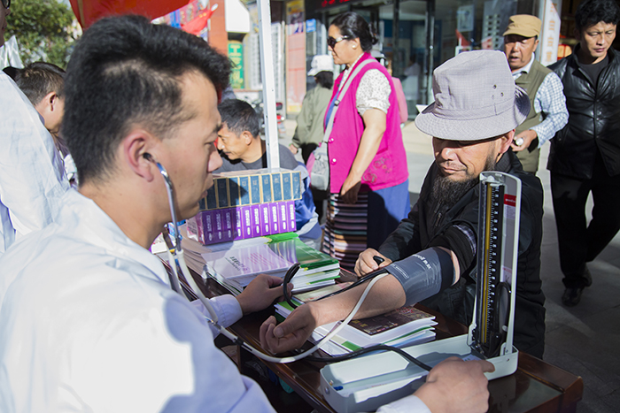 自14日早上九點活動開始,前來阜康醫(yī)藥義診宣傳點測血壓、測血糖、咨詢身體健康問題及安全用藥知識的人便絡(luò)繹不絕,整整一上午,阜康醫(yī)藥16名醫(yī)護人員都在一刻不停的忙前忙后,但能夠為廣大藏族同胞及社會群眾服務(wù),大家都絲毫不覺得辛苦,反而發(fā)自內(nèi)心的感到充實與喜悅。據(jù)活動結(jié)束后統(tǒng)計,本次活動西藏阜康醫(yī)藥發(fā)展有限公司免費發(fā)放各類相關(guān)資料千余份,免費發(fā)放維生素、鈣片、風濕及心腦類等藥品一萬兩千余元,免費測血壓、血糖、看病等也多達數(shù)百人次。