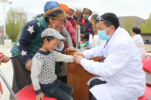 2015年4月29日,西藏自治區(qū)老年干部中心聯(lián)合西藏阜康醫(yī)院婦產(chǎn)兒童分院開(kāi)展“送醫(yī)送藥,愛(ài)心義診”活動(dòng)。醫(yī)院共派出內(nèi)科、婦科、B超室三名醫(yī)生及一名護(hù)士攜帶相關(guān)醫(yī)療器械及藥品赴貧困的林周縣色康村進(jìn)行愛(ài)心義診。