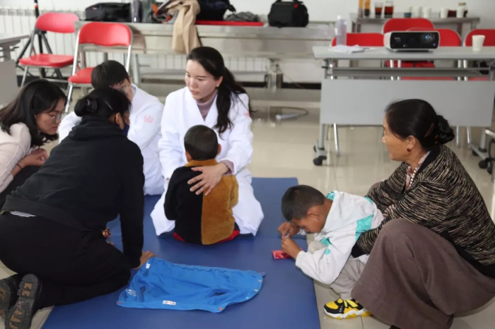 康復(fù)醫(yī)學(xué)科萬晨老師給孩子們做康復(fù)指導(dǎo)
