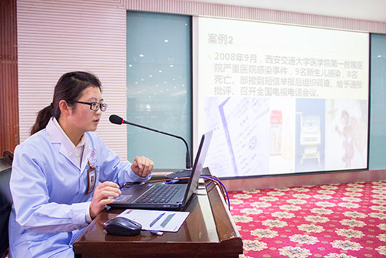 王茹主任隨后就院感定義、院感途徑、院感要求、院感控制、洗手消毒指征與八步洗手法、發(fā)生職業(yè)暴力如何正確應(yīng)對(duì)、醫(yī)療垃圾分類(lèi)、如何應(yīng)對(duì)傳染病以及相關(guān)法律法規(guī)等多個(gè)要點(diǎn)做了詳細(xì)講解,以讓我們新入職的醫(yī)、技、護(hù)工作人員在以后的日常工作中,能夠更加規(guī)范的完成各自的相關(guān)工作、更加注重與醫(yī)院感染相關(guān)的各項(xiàng)細(xì)節(jié),從而程度地避免我院發(fā)生醫(yī)院感染事件的可能性。