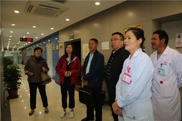 西藏阜康醫(yī)院業(yè)務(wù)院長李君、歐珠羅布,院長助理多杰太、李麗及各相關(guān)科室負(fù)責(zé)人一起陪同調(diào)研。