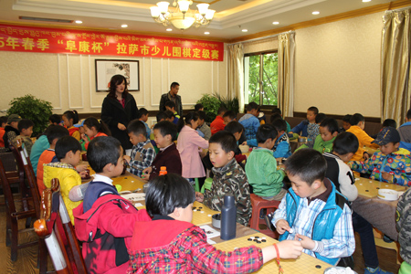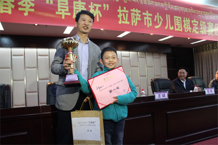 3月25日比賽結束后“復康杯”少兒圍棋定級賽頒獎儀式開始,拉薩棋院院長王斌、西藏阜康醫(yī)藥發(fā)展有限公司總經理劉瀟瀟、西藏阜康醫(yī)藥發(fā)展有限公司總經理陳彬、拉薩棋院圍棋部副主任趙鈞以及棋院老師陳學滸、袁文琴出席了本次會議。 王斌院長在頒獎儀式表示,很高興能夠舉辦拉薩市首屆“阜康杯”少兒圍棋定級賽,他向比賽獲勝者表示衷心的祝賀,希望他們能再接再厲繼續(xù)學習圍棋。他了解到很多家長對拉薩市棋院選址郵政賓館非常滿意,這里環(huán)境清幽,非常適合教學,他當場表示郵政賓館二樓已經被棋院斥資180萬元租賃6年,至少在6年以內棋院不會從新選址。王斌表示,目前,拉薩棋院正在向上級有關部門申請圍棋段位資格證的相關事宜,如無意外,預計在今年年底能夠申請成功,完成圍棋段位資格證的申請,不僅能給我區(qū)圍棋事業(yè)的發(fā)展帶來很大的幫助同時也能讓我區(qū)更多的圍棋愛好者參與到此次項目。