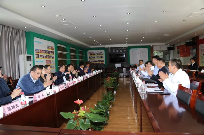 2018年8月28日,安徽省阜陽市委副書記、市長孫正東,市政協(xié)主席李志偉率團(tuán)蒞臨阜康醫(yī)院婦產(chǎn)兒童分院視察指導(dǎo),西藏阜康醫(yī)療股份有限公司黨委書記、董事長王斌對孫市長、李主席一行的到來表示熱烈歡迎,并與考察團(tuán)進(jìn)行了座談。