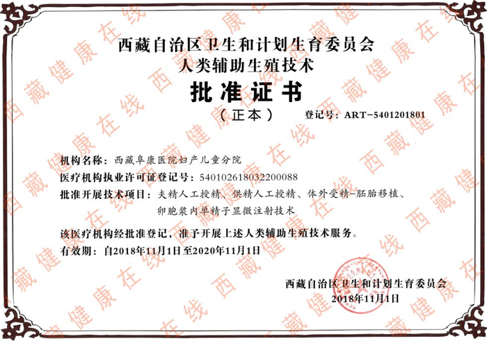 近日,西藏自治區(qū)衛(wèi)生和計劃生育委員會正式下發(fā)文件,確認(rèn)由西藏阜康醫(yī)院婦產(chǎn)兒童分院生殖醫(yī)學(xué)中心開展的常規(guī)體外受精-胚胎移植(IVF-ET)技術(shù)、卵胞漿內(nèi)單精子顯微注射(ICSI)技術(shù)、夫精人工授精(AIH)及供精人工授精(AID)技術(shù),四項人類輔助生殖技術(shù)校驗(yàn)合格,同意該中心作為西藏目前開展人類輔助生殖技術(shù)中心繼續(xù)開展相關(guān)技術(shù)的單位。