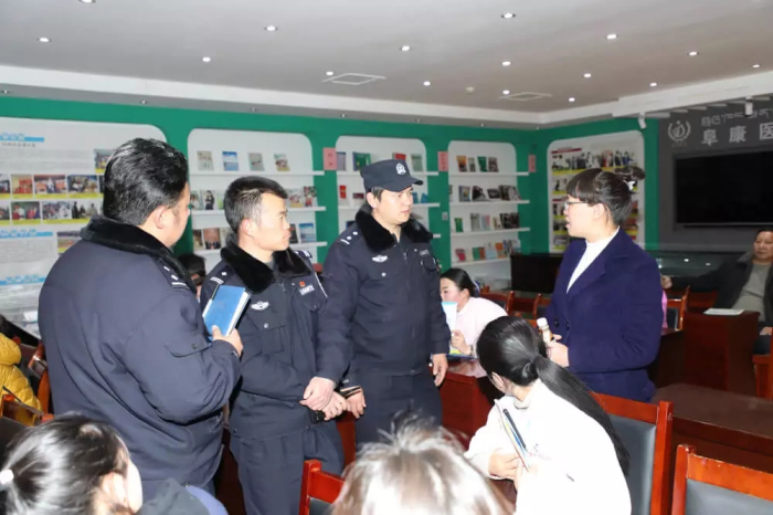 城關(guān)區(qū)公安局兩島派出所副所長羅布旺堆、治安中隊長李治平對阜康醫(yī)療長期以來重視法制建設(shè)與宣傳、積極支持配合公安機關(guān)的工作表示感謝。希望阜康醫(yī)療廣大醫(yī)護人員更好地利用法律武器保護自己的合法權(quán)益,在臨床一線工作中遇到糾紛時要注意保護好相關(guān)證據(jù),并及時報警防止事態(tài)擴大。醫(yī)院安保人員作為處置突發(fā)事件的第一力量,要及時對現(xiàn)場情況進行有效控制,為公安人員的后續(xù)工作贏得必要時間。