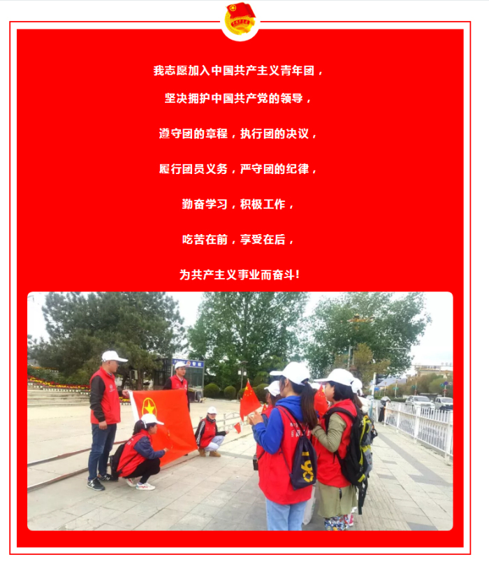 上午9時(shí),公司共產(chǎn)主義青年團(tuán)全體成員在紀(jì)念碑前重溫中國共產(chǎn)主義青年團(tuán)入團(tuán)誓詞:
