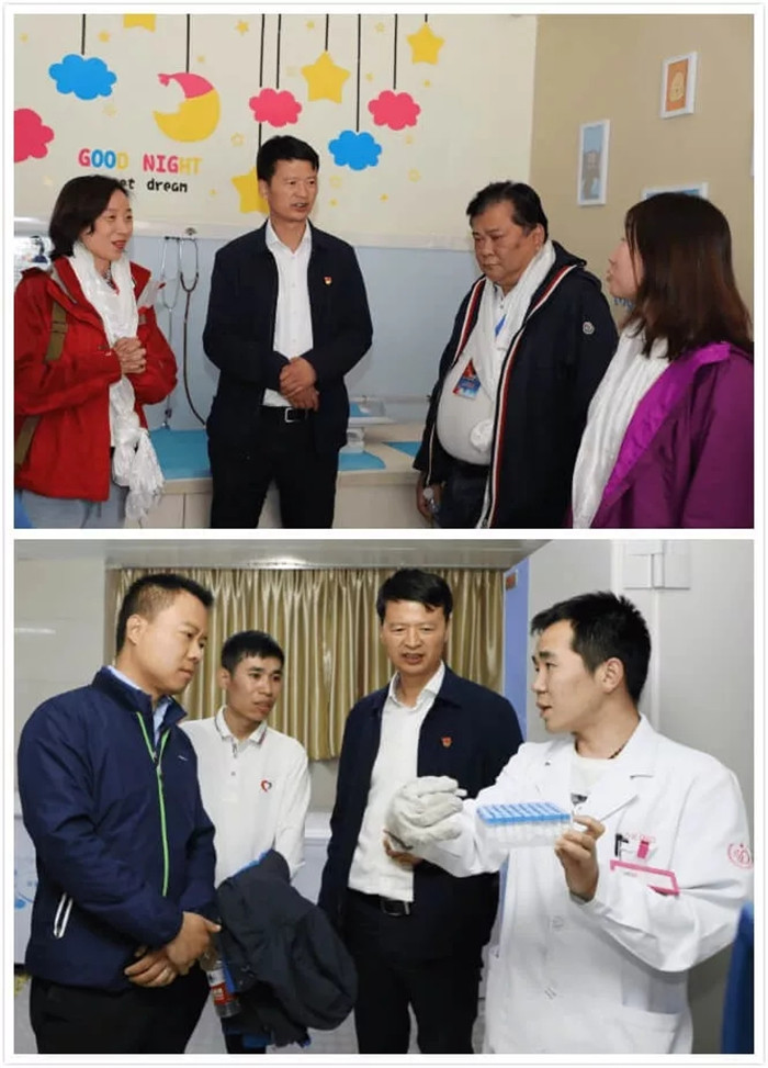 義診期間,中共中央統(tǒng)戰(zhàn)部七局處長(zhǎng)郭鵬與“同心共鑄中國心”駐西藏秘書長(zhǎng)趙士磊來到了阜康婦產(chǎn)兒童醫(yī)院詳細(xì)查看了正在井然有序進(jìn)行的義診現(xiàn)場(chǎng),在王斌董事長(zhǎng)陪同下參觀阜康婦產(chǎn)兒童醫(yī)院院區(qū),聽取并查看了我院人類輔助生殖醫(yī)學(xué)中心等特色科室的開展情況。
