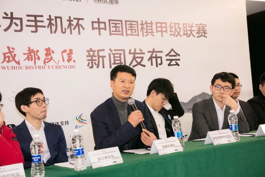 7日晚,2020華為手機杯中國圍棋甲級聯(lián)賽第二階段成都武侯分站賽第十輪賽后發(fā)布會于成都東方美豪麗致酒店舉行。中國圍棋協(xié)會副主席、棋圣聶衛(wèi)平,中國圍棋協(xié)會副主席、國家圍棋隊總領(lǐng)隊華學明及第十輪勝出的八支棋隊的代表出席了發(fā)布會。拉薩棋院院長、西藏自治區(qū)圍棋協(xié)會主席、西藏阜康隊領(lǐng)隊王斌出席會議并代表發(fā)言。