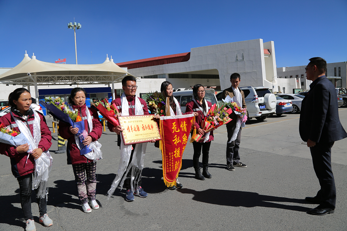 ? 值此秋高氣爽、碩果累累的豐收季節(jié),10月23日,阜康醫(yī)療隊(duì)圓滿完成阿里地區(qū)包蟲(chóng)病義務(wù)篩查任務(wù),滿載榮譽(yù)而歸,隨著醫(yī)療隊(duì)全體成員從拉薩機(jī)場(chǎng)緩緩走出,陳彬副書(shū)記代表公司黨委對(duì)他們表示了熱烈的歡迎,并為每位隊(duì)員獻(xiàn)上鮮花和哈達(dá),歡迎他們回家。