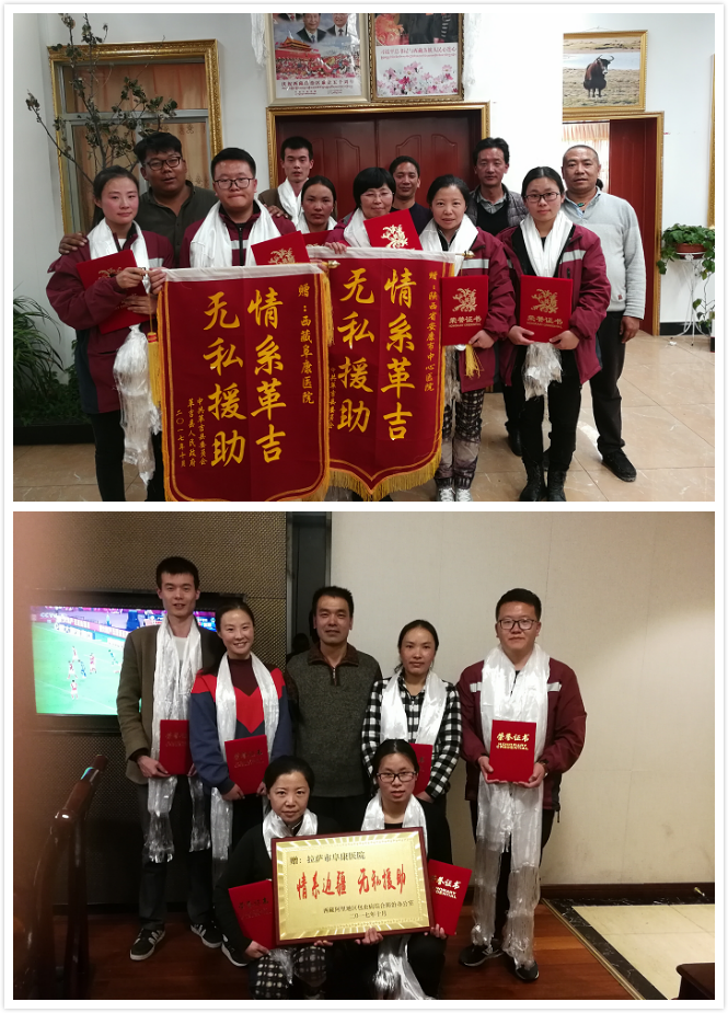 為表彰阜康醫(yī)療隊(duì)在阿里包蟲(chóng)病篩查中所作出的貢獻(xiàn),阿里地區(qū)包蟲(chóng)病綜合防治辦公室授予我院“情系邊疆,無(wú)私援助”錦旗,中共革吉縣委員會(huì)、革吉縣人民政府授予我院“情系革吉、無(wú)私援助”榮譽(yù)稱號(hào),阿里地區(qū)衛(wèi)計(jì)委、革吉縣衛(wèi)生局為醫(yī)療隊(duì)的每一位成員頒發(fā)榮譽(yù)證書(shū)。