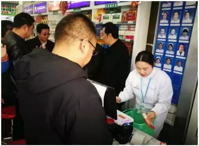 市民在阜康醫(yī)藥超市使用新版社保卡
