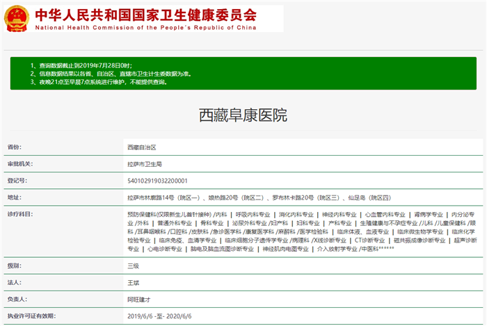 經(jīng)西藏自治區(qū)醫(yī)療保障局審批同意,2019年8月1日起,西藏阜康醫(yī)院等級提升為三級綜合醫(yī)院,同時西藏阜康醫(yī)院婦產(chǎn)兒童分院不單獨納入醫(yī)保定點,統(tǒng)一并入西藏阜康醫(yī)院進行醫(yī)療費用結(jié)算,不影響參保人群看病就醫(yī)。