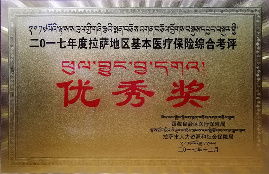 2017年度拉薩地區(qū)基本醫(yī)療保險綜合考評優(yōu)秀獎