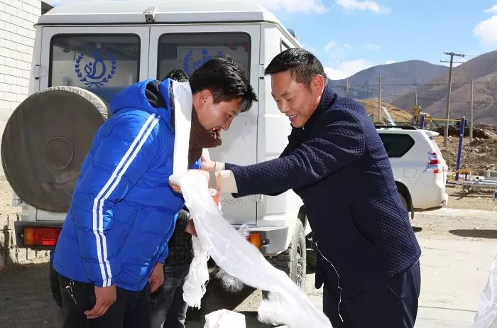 ●公司黨委副書記、副總經(jīng)理陳彬為嘉黎縣夏瑪鄉(xiāng)一村村民獻上哈達