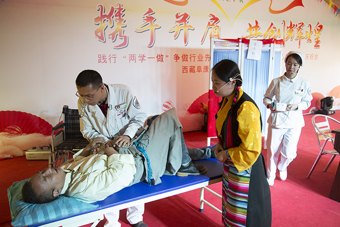 據(jù)了解,塔巴次仁因不幸患有腦癱疾病而一直不能下地走路,只能依靠輪椅出行,但自十余日前在我院針灸理療科接受相應(yīng)治療至今,塔巴次仁的病情獲得明顯好轉(zhuǎn),現(xiàn)已可以開(kāi)始嘗試離開(kāi)輪椅自己走路;為了表達(dá)自己與親人對(duì)阜康全體醫(yī)護(hù)人員的感謝,不會(huì)漢語(yǔ)的塔巴次仁堅(jiān)持學(xué)習(xí)并在林卡演出現(xiàn)場(chǎng)為大家演唱了一首《感恩的心》。塔巴次仁的康復(fù),無(wú)疑是一個(gè)令大家喜悅的好消息,我們共同祝愿他能盡早的徹底離開(kāi)輪椅,能像正常人一樣,可以用自己的雙腳去到任何一個(gè)自己想去的地方!