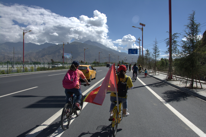在活動(dòng)開始前,工作人員對(duì)騎行人員的裝備,紀(jì)律以及騎行過程中的注意事項(xiàng)等做了嚴(yán)格的要求。騎行路線從拉薩大藥房出發(fā),沿著德吉路、太陽島東橋、318國道,最后達(dá)到普巴林公園。