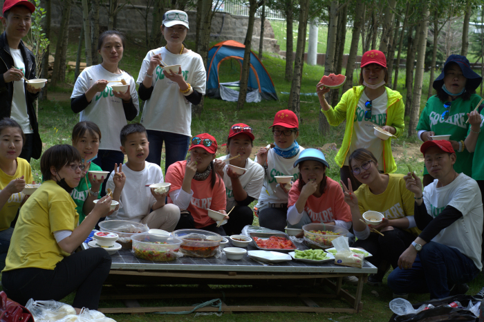 到達(dá)公園后,大家開始支鍋,洗菜的洗菜、烹飪的烹飪、玩兒的玩兒……好不熱鬧。不多久,一頓饕餮大宴就上桌了。在大快朵頤之后大家開始做活動(dòng),拾垃圾、踢毽子、吹氣球等,一系列既環(huán)保又能體現(xiàn)團(tuán)隊(duì)協(xié)作比賽活動(dòng)拉近了所有參與者的距離,最后還為所有參與者贈(zèng)送了小禮品。大家在歡歌笑語中享受到了一頓豐盛的“綠色大餐”。