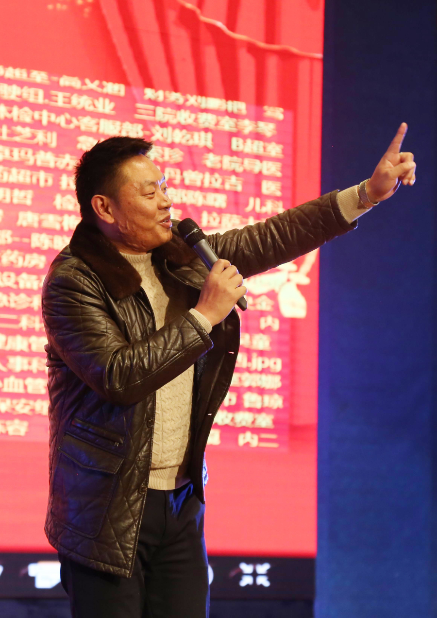 隨后,董事長(zhǎng)王斌走上講臺(tái)飽含激情地說“我之存在,因?yàn)橛心?rdquo;,并向所有來賓鞠躬致謝。董事長(zhǎng)王斌講述了阜康發(fā)展史、阜康人的奮斗史,從2005年的47名員工到現(xiàn)在的1024名員工,并再次感謝一路伴隨阜康成長(zhǎng)的所有人,還指出2018年是阜康發(fā)展史上很關(guān)鍵的一年,要早計(jì)劃、早安排、早部署,要以十九大精神為指導(dǎo),堅(jiān)持科學(xué)發(fā)展觀,早日把阜康建設(shè)成為現(xiàn)代化醫(yī)院。