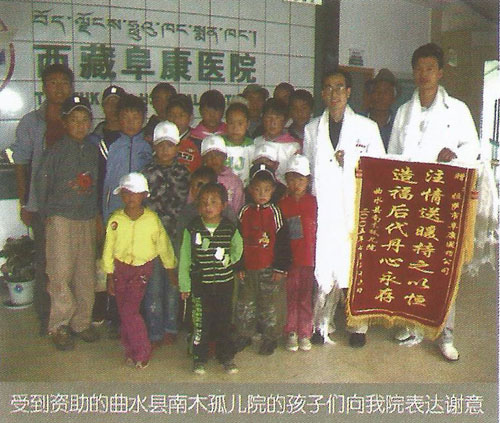 到了2000年,注冊成立了西藏阜康醫(yī)藥發(fā)展有限公司,下設(shè)阜康醫(yī)院、阜康大藥房和拉薩大藥房等8個分公司。從最初的一間藥房起,到創(chuàng)辦西藏阜康醫(yī)院。做為一名從醫(yī)者王斌說:“醫(yī)者父母心”,醫(yī)生要有一顆仁慈的心善待患者,應(yīng)視病人為親人、為自己的父母姐妹。在王斌的帶領(lǐng)下阜康醫(yī)院在注重兩個效益的同時,時刻不忘回報社會在制定醫(yī)療收費標(biāo)準(zhǔn)方面參照拉薩市醫(yī)療收費標(biāo)準(zhǔn)的基礎(chǔ)上再下調(diào)20%,對藥品定價按照物價部門規(guī)定的價格水平下調(diào)15%,是目前拉薩市醫(yī)療收費標(biāo)準(zhǔn)最低的,同時還取消了門診、急診等一系列費用。對經(jīng)濟(jì)困難的病員實行減少或免費治療,到至今在阜康醫(yī)院從沒出現(xiàn)過因病人無錢付醫(yī)療費而得不到治療的現(xiàn)象。并在醫(yī)院員工制度上推出七條禁令“嚴(yán)禁見死不救、嚴(yán)禁推諉病人、嚴(yán)禁收受病人紅包、嚴(yán)禁私扣病人藥品”等各種制度保障病人利益不受侵犯。從2005年4月28日開業(yè)始,幾年來阜康醫(yī)院對經(jīng)濟(jì)有困難的門診、急診病人實行減免醫(yī)療費用人數(shù)達(dá)560多人次,“惠民病房”優(yōu)惠幅度達(dá)50%,減免優(yōu)惠金額達(dá)64余萬元,同時還采取各種形式送醫(yī)、送藥下鄉(xiāng),到孤兒院、養(yǎng)老院、殘疾人學(xué)校等免費送醫(yī)、送藥、資助等。