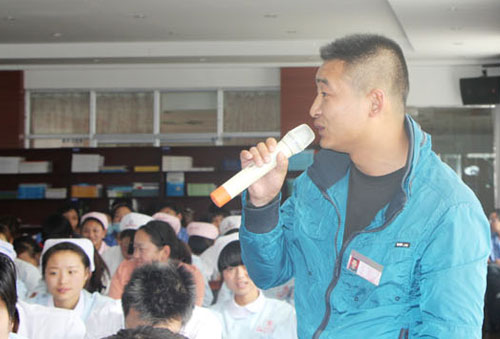 員工代表阜康醫(yī)院骨科的張治主任,朗通了自己作的一首小詩,以此來感謝家人、親朋好友對自己的支持;感謝自己有一個不滅的理想;感謝拉薩純凈的天空;感謝王總的人格魅力。并表示,今后要為藏族同胞做出更大的貢獻。