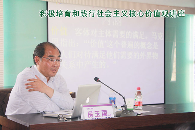講座通過討論“新世紀(jì)的年輕人最缺乏的是什么?”相關(guān)內(nèi)容展開。房玉國教授從三個(gè)方面對此進(jìn)行了闡述:第一,培育和踐行社會主義核心價(jià)值觀是實(shí)現(xiàn)中國夢的助推器。核心價(jià)值觀蘊(yùn)含著人們對世界、人生、社會等一系列重大問題的價(jià)值共識,深刻影響著每個(gè)社會成員的思想觀念、思維方式、行為規(guī)范,是人們思想上精神上的靈魂旗幟。第二,培育和踐行社會主義核心價(jià)值觀是鞏固主流意識形態(tài)地位的導(dǎo)航燈。主流意識形態(tài)在各種意識形態(tài)中有明顯的導(dǎo)向作用,能統(tǒng)領(lǐng)全體社會成員的價(jià)值追求和理想信念。第三,培育和踐行社會主義核心價(jià)值觀是集聚社會正能量的粘合劑。培育和踐行社會主義核心價(jià)值觀是引導(dǎo)全社會在思想上共同進(jìn)步、端正社會風(fēng)氣的基本途徑。