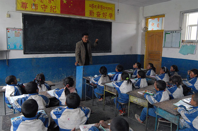 米瑪老師說,他出生在日喀則市亞東縣城,自幼家庭條件較好。自初中開始,他便先后在濟(jì)南、咸陽等內(nèi)地大中城市求學(xué),早已習(xí)慣了城市的生活和思維方式。2002年大學(xué)畢業(yè)被分配到日喀則定日縣崗嘎鎮(zhèn)東巴完小工作。